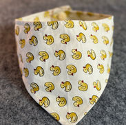 Handmade with care and crafted for comfort, these reversible bandanas add a touch of personality to every pet. Each bandana is sewn with quality cotton fabrics, featuring an easy release snap for comfort and safety, and is completely machine washable. Add a touch of charm to your pet’s look with our one of a kind hand-crafted bandana!